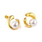 Shaped half circle with white pearl earrings 18k gold